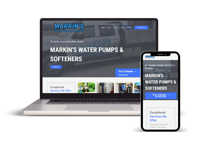 Modern site built for Markin’s Pumps in Urbana, OH to highlight services, build trust, and make it easy for customers to request repairs or water system installs.