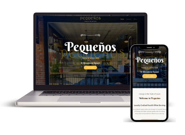 Elegant website for Pequeños in Urbana, OH featuring menus, events, and reservations—built to reflect the cozy wine bar vibe and drive local traffic through SEO and design. Currently run Instagram/Facebook page.